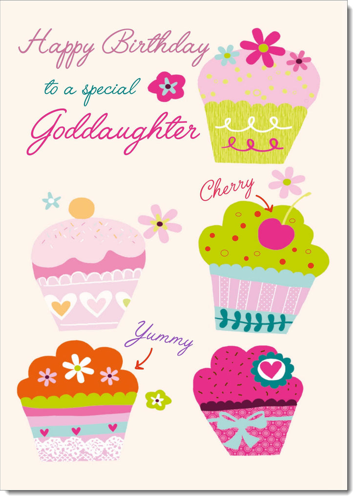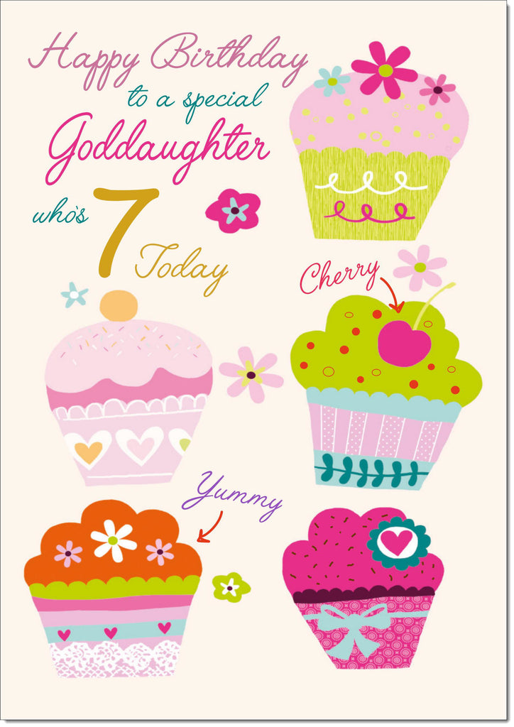 Goddaughter 7th Birthday Card Age 7 Bright Cupcakes