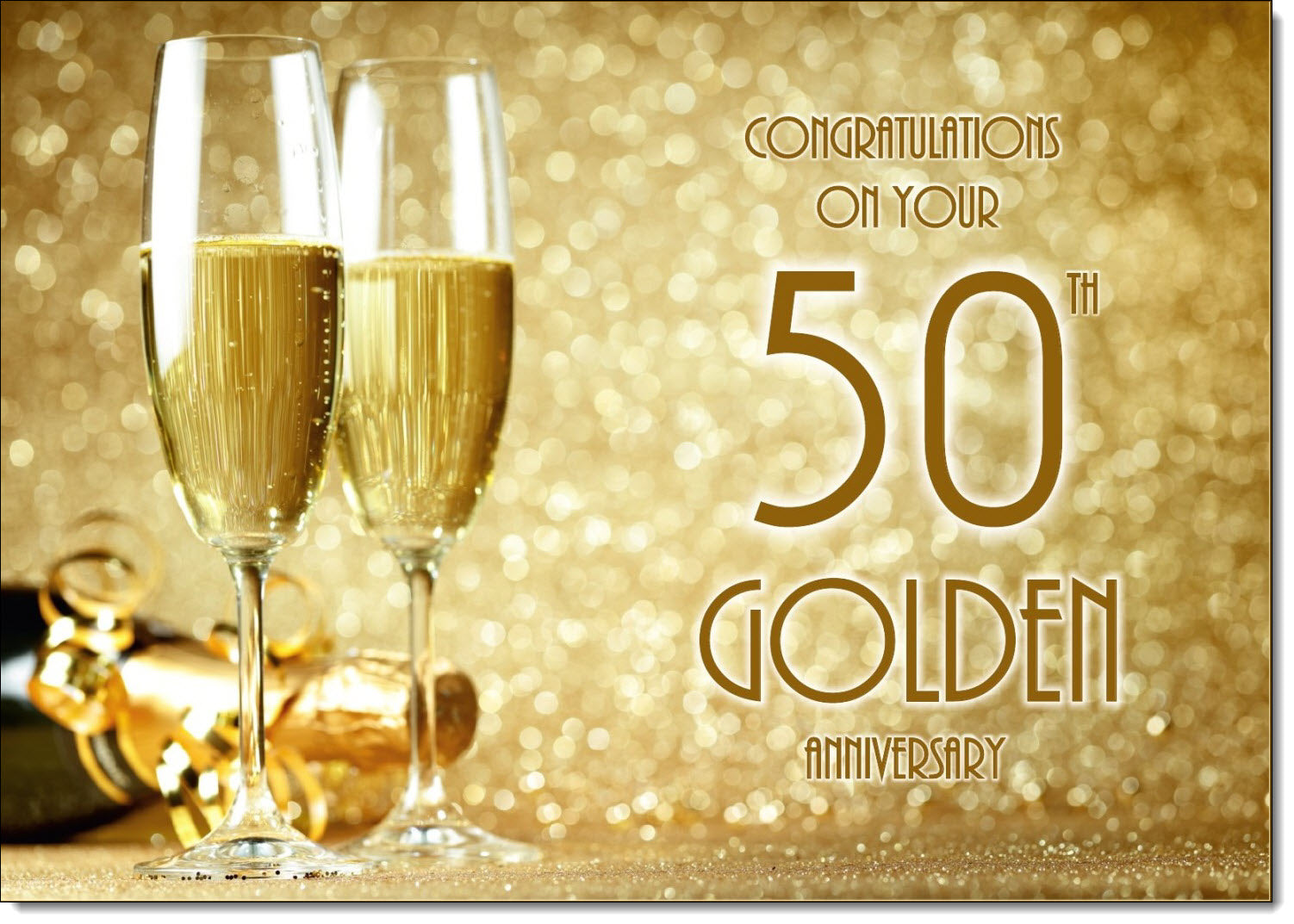 Your Golden 50th Wedding Anniversary Card Champagne Bottle and Glasses
