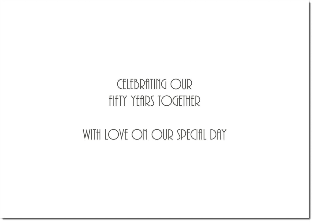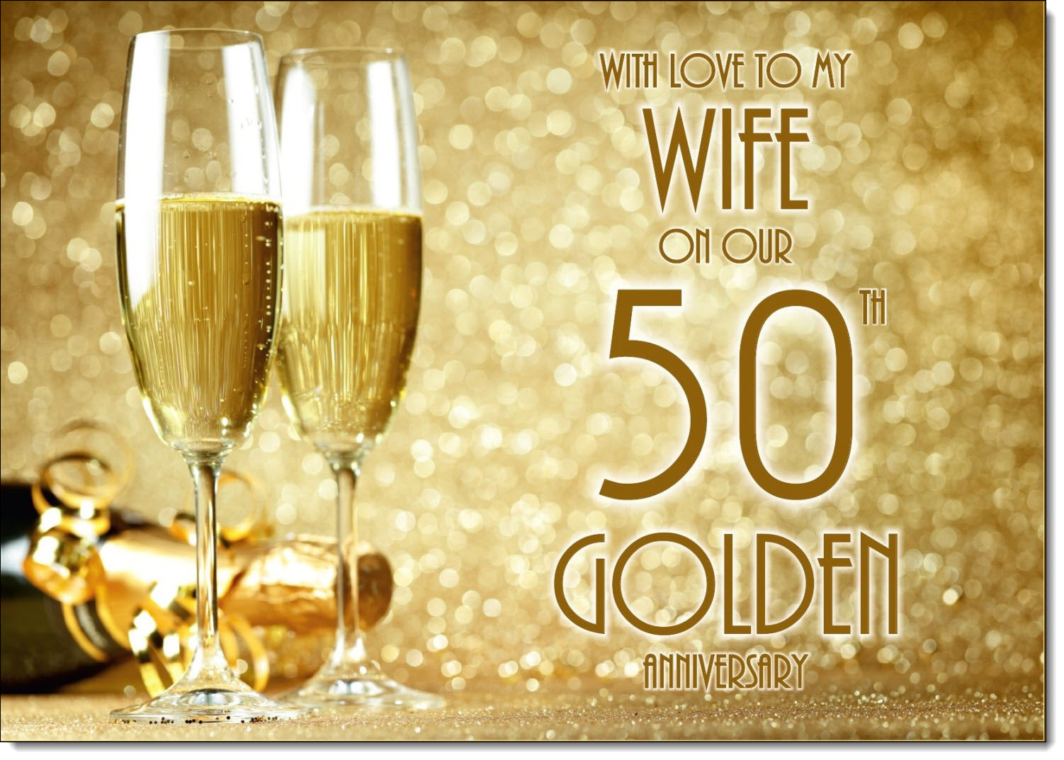 Wife Golden 50th Wedding Anniversary Card Champagne Bottle and Glasses