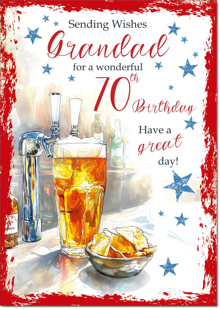 Grandad 70th Birthday Card Age 70 Beer and Crisps
