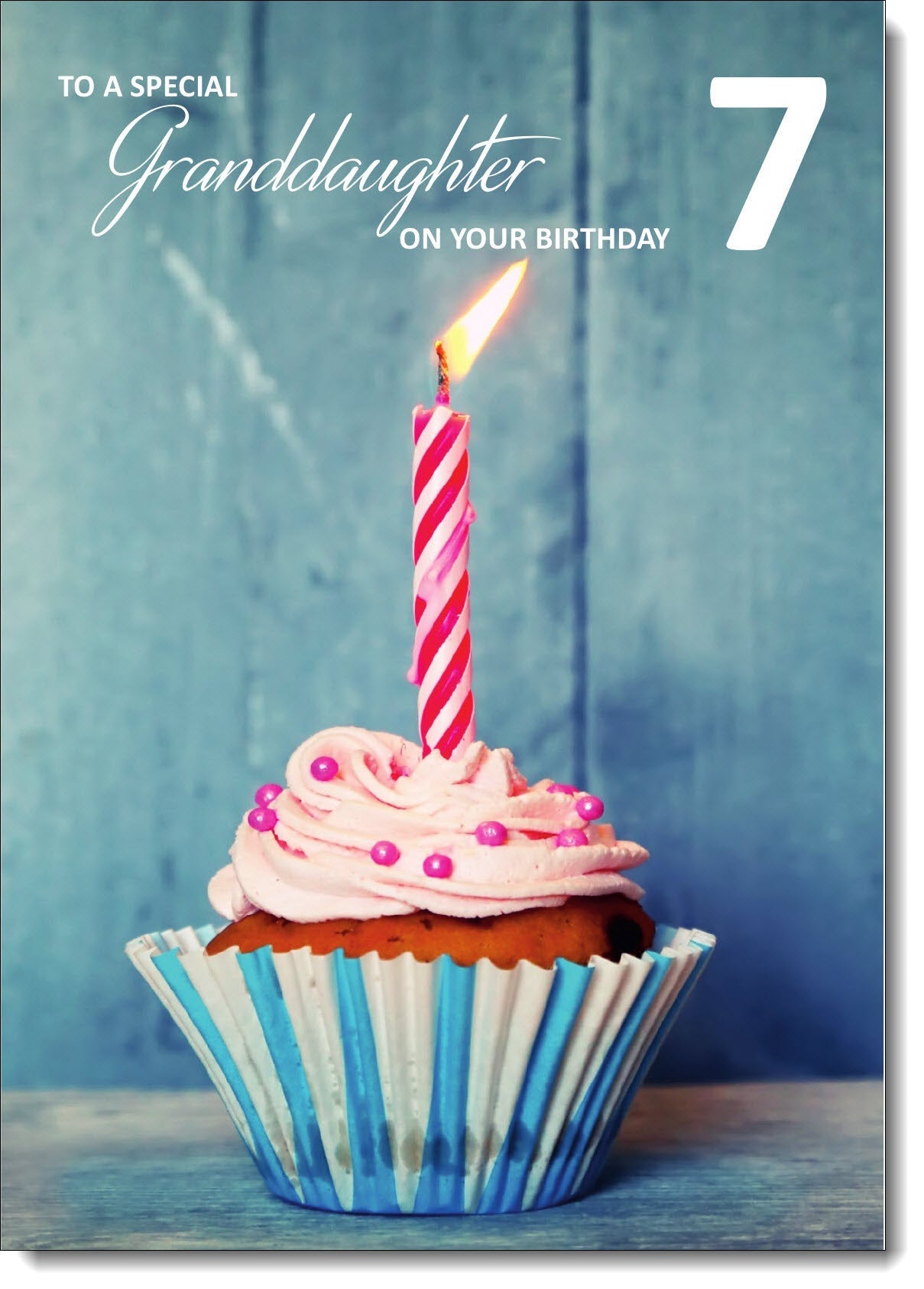 Granddaughter 7th Birthday Card Age 7 Cupcake and Pink Candle