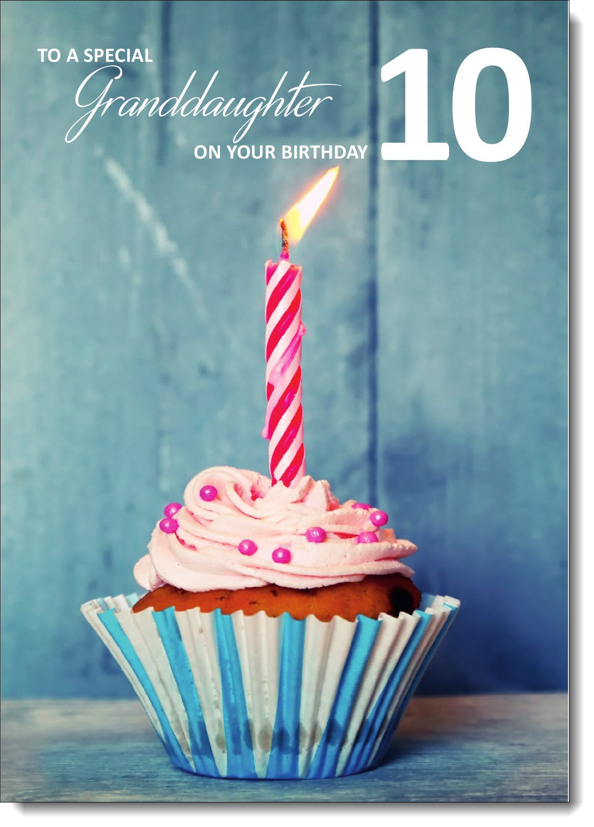 Granddaughter 10th Birthday Card Age 10 Cupcake and Pink Candle