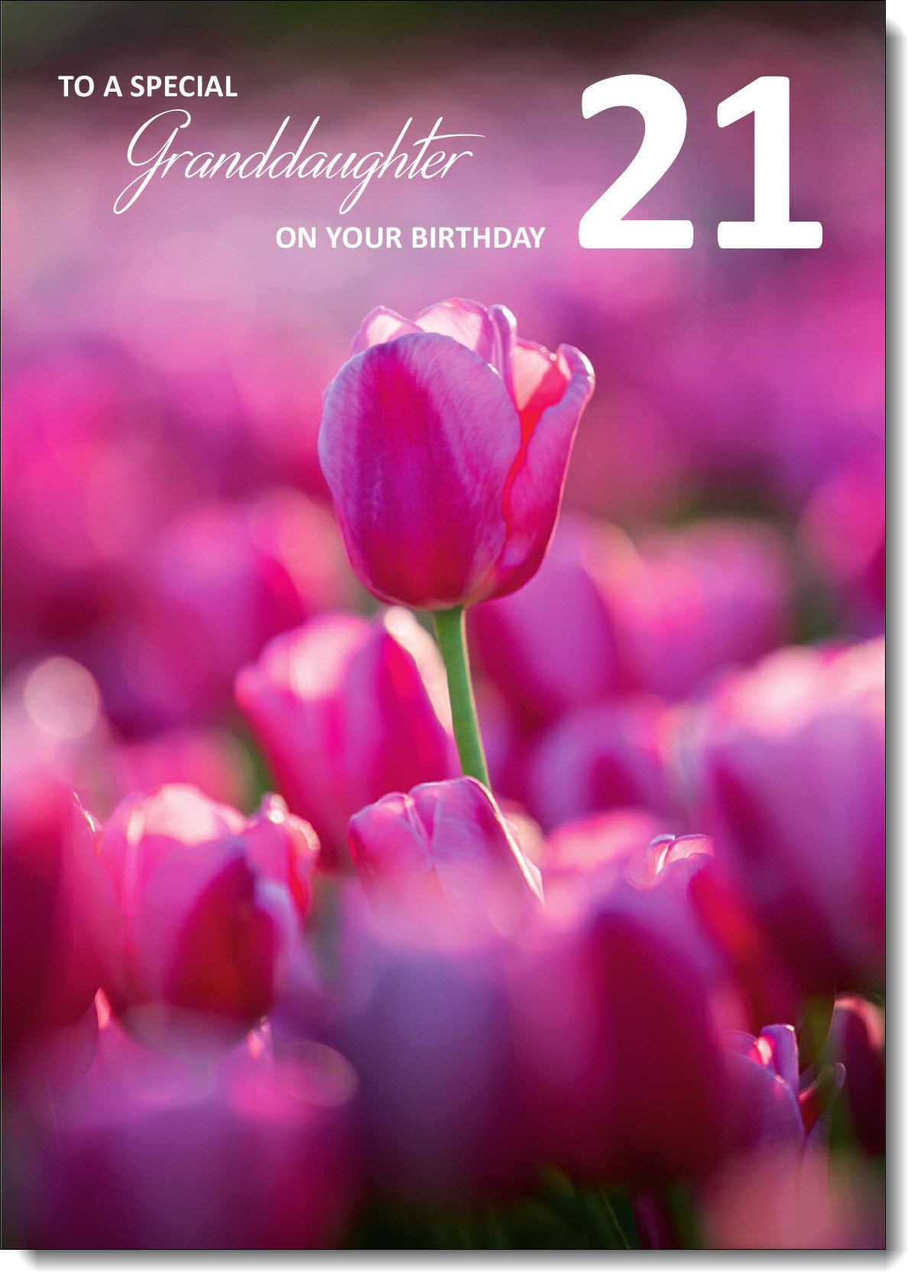 Granddaughter 21st Birthday Card Age 21 Pink Tulip Field