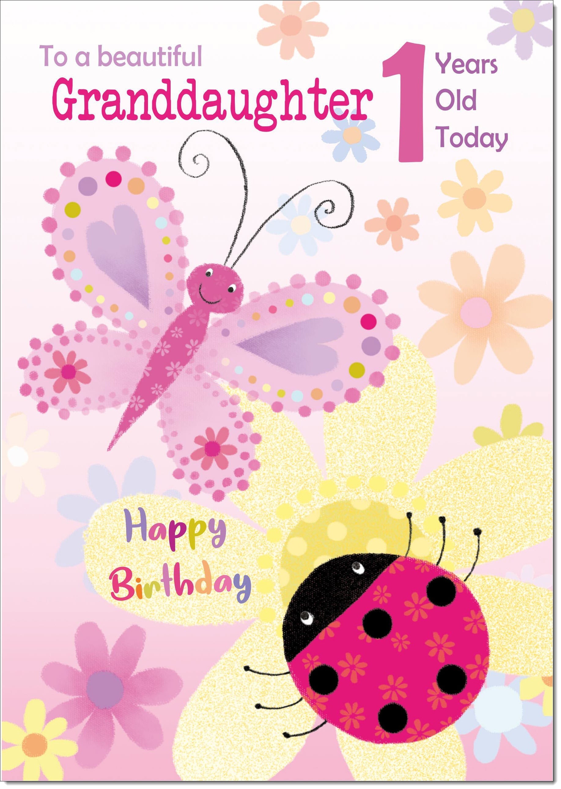 Granddaughter 1st Birthday Card Age 1 Ladybird and Butterfly