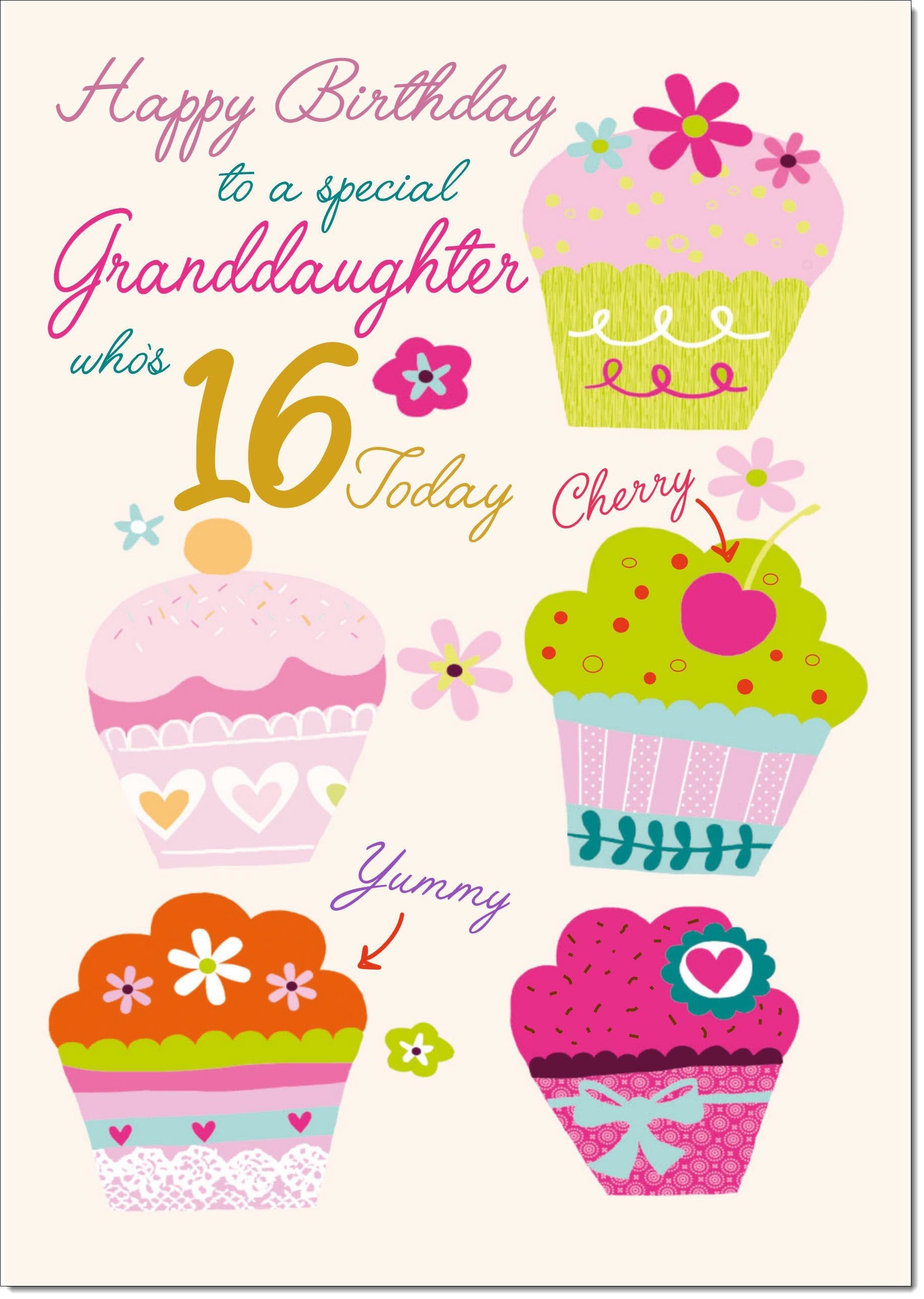 Granddaughter 16th Birthday Card Age 16 Bright Cupcakes