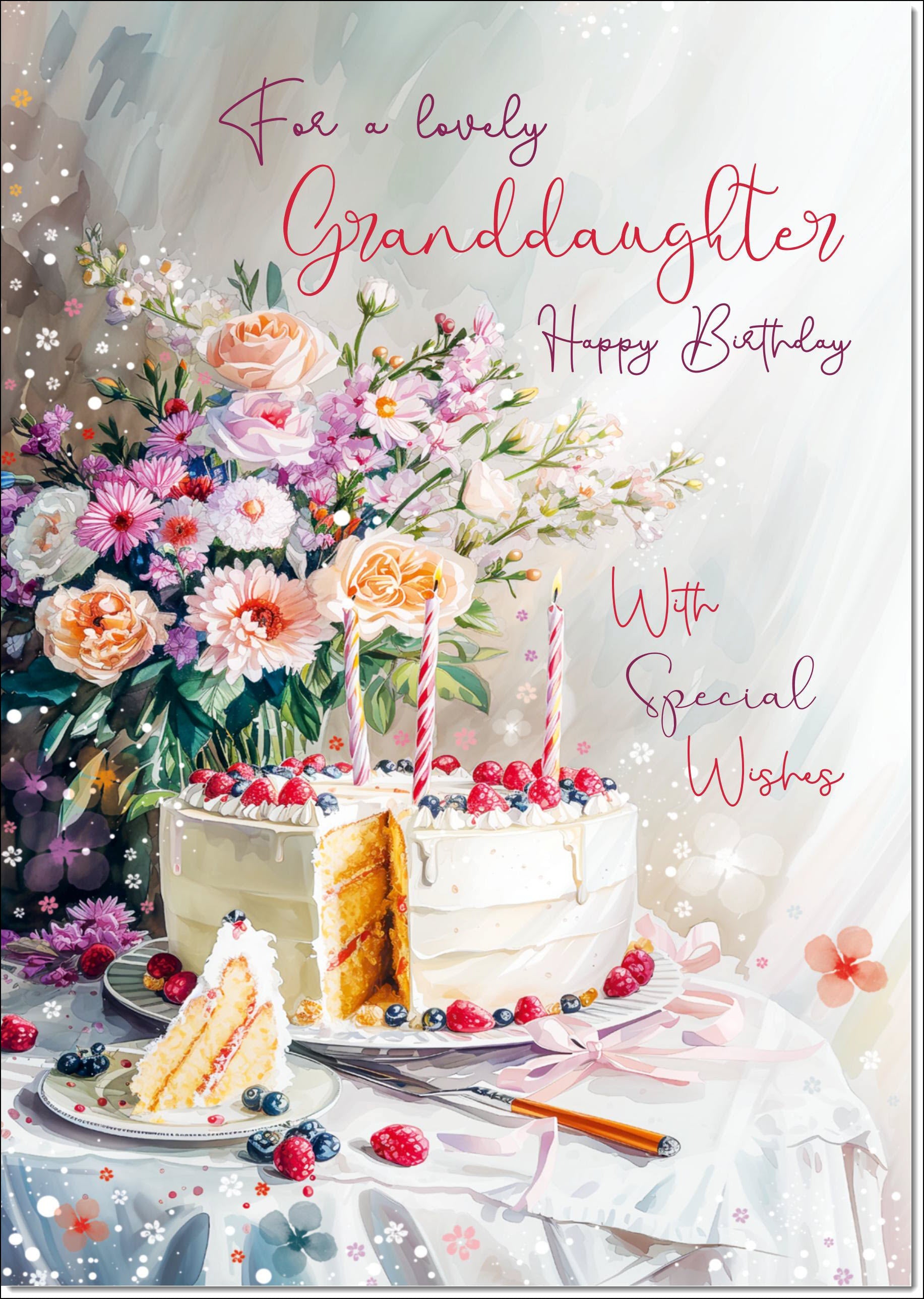 Granddaughter Birthday Card Birthday Cake and Flowers