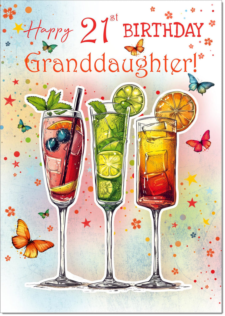 Granddaughter 21st Birthday Card Age 21 Cocktails and Butterflies