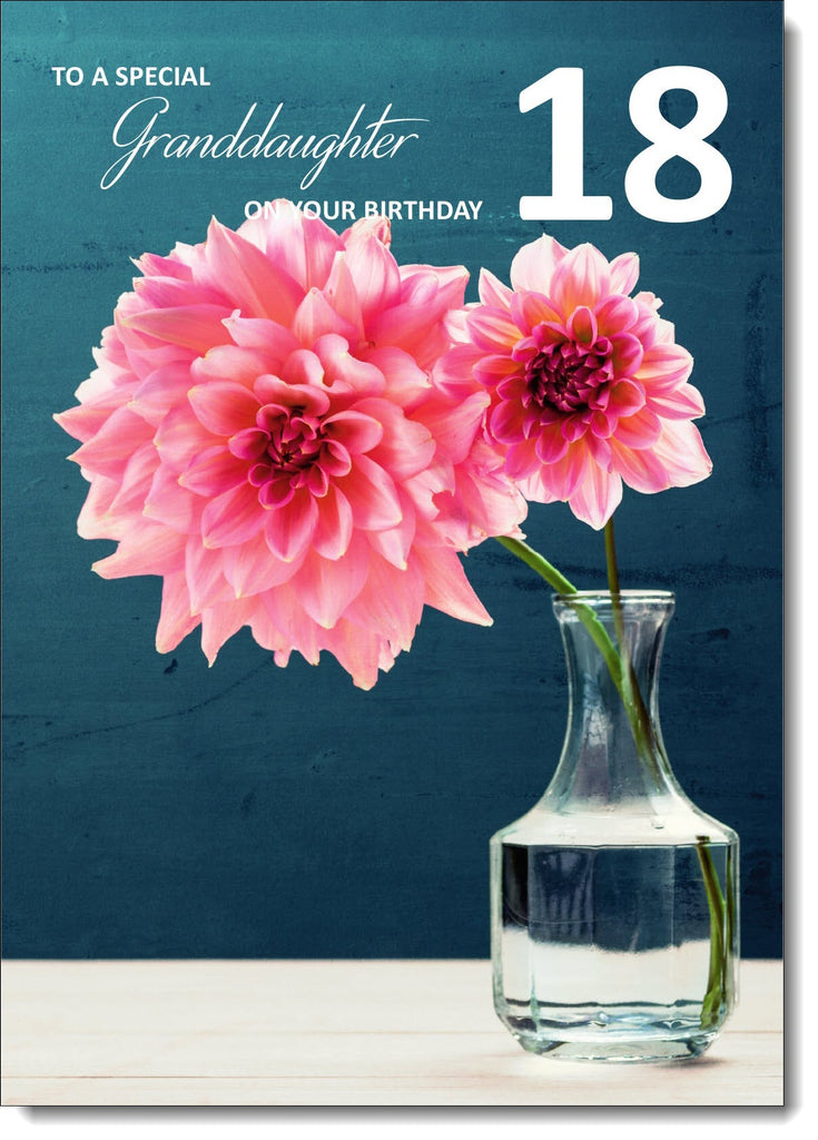 Granddaughter 18th Birthday Card Age 18 Large Pink Flowers