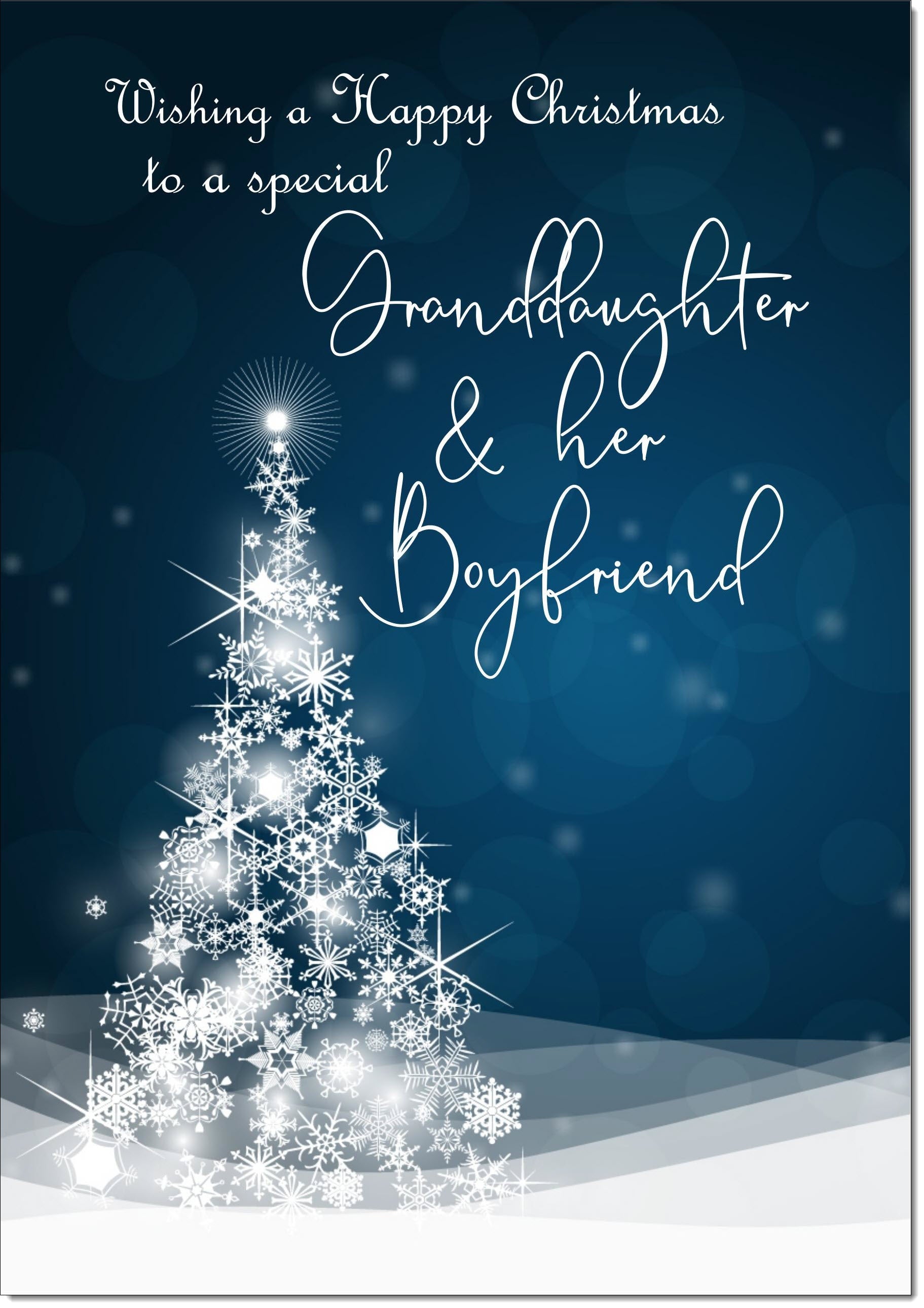 Granddaughter & Boyfriend Christmas Card Blue Abstract Christmas Tree