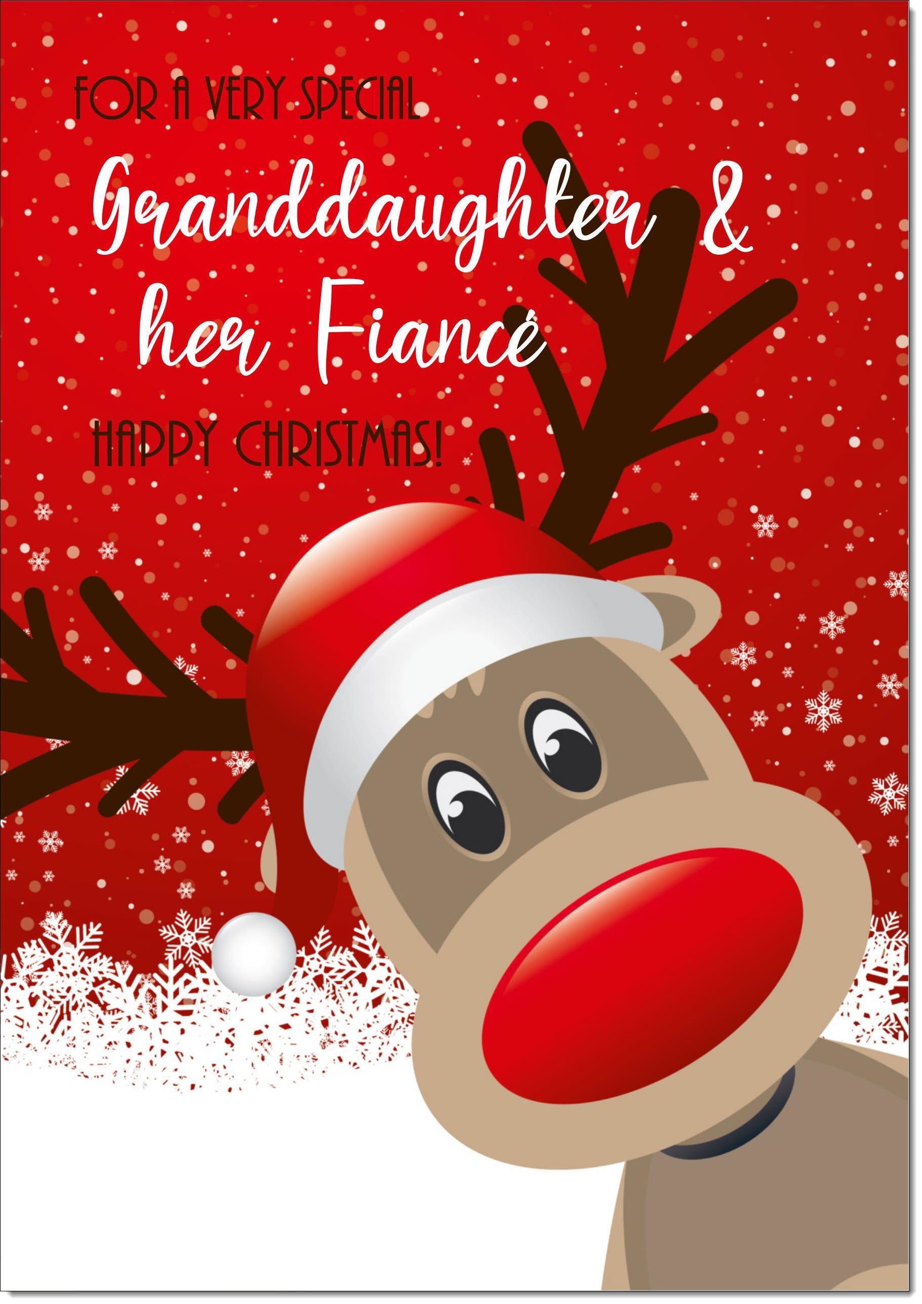 Granddaughter & Fiance Christmas Card Rudolph in Snow