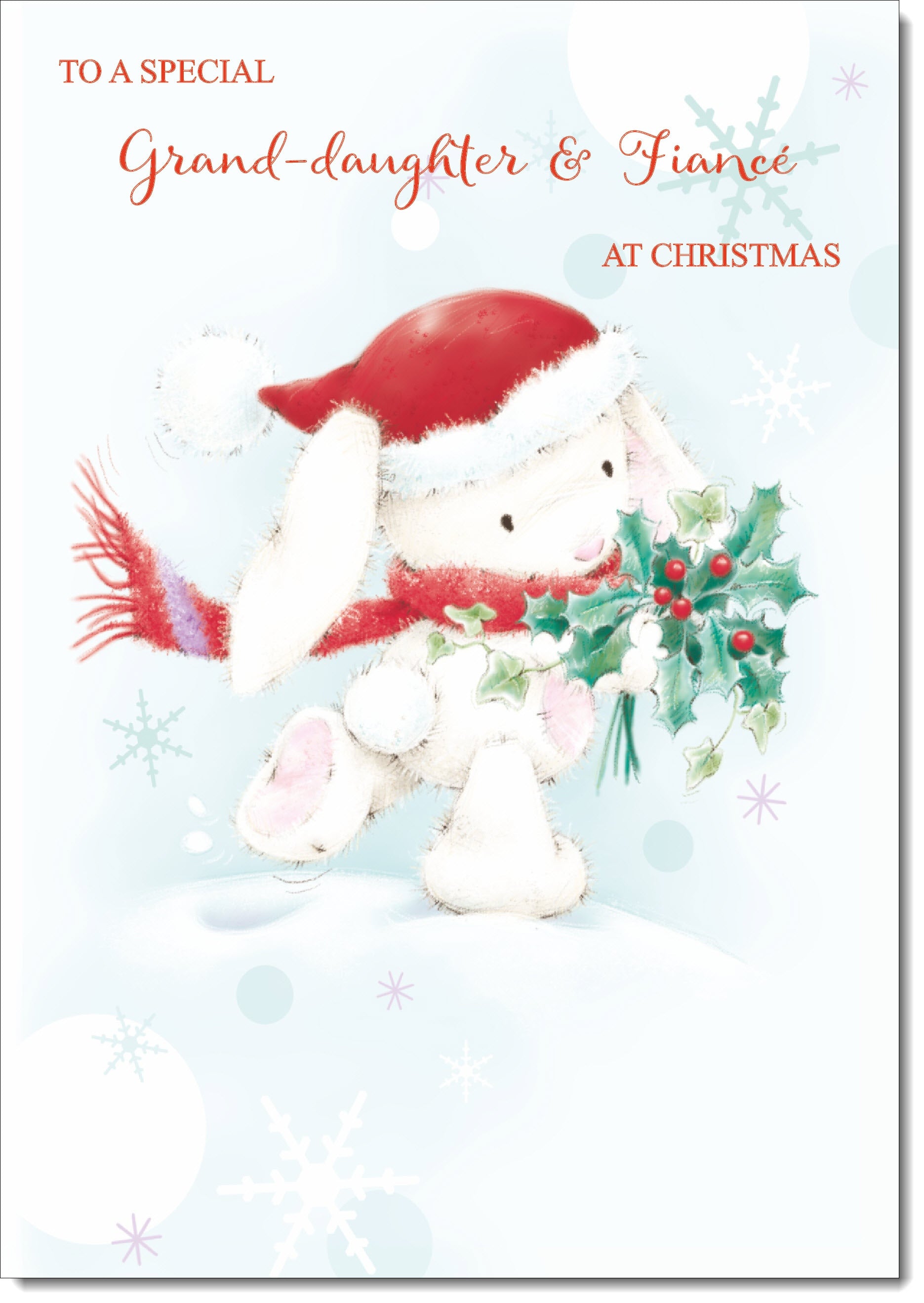 Granddaughter & Fiance Christmas Card Cute Rabbit with Holly