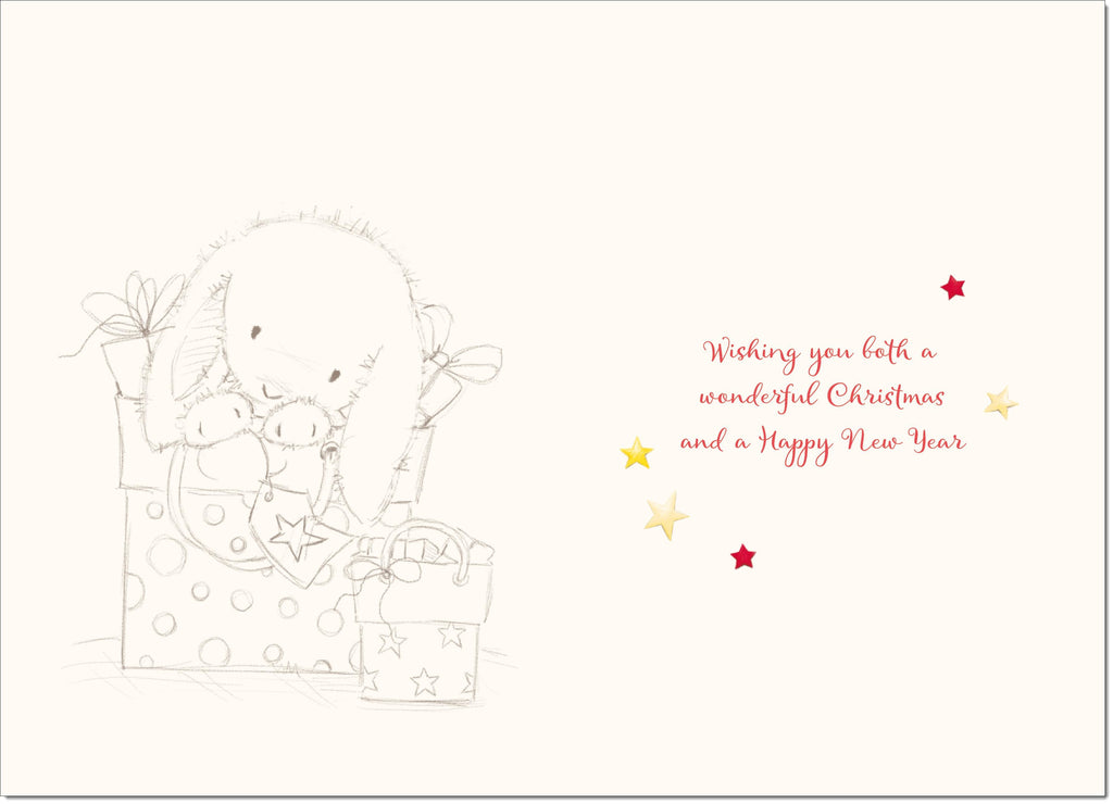 Granddaughter & Partner Christmas Card Cute Rabbit with Parcels