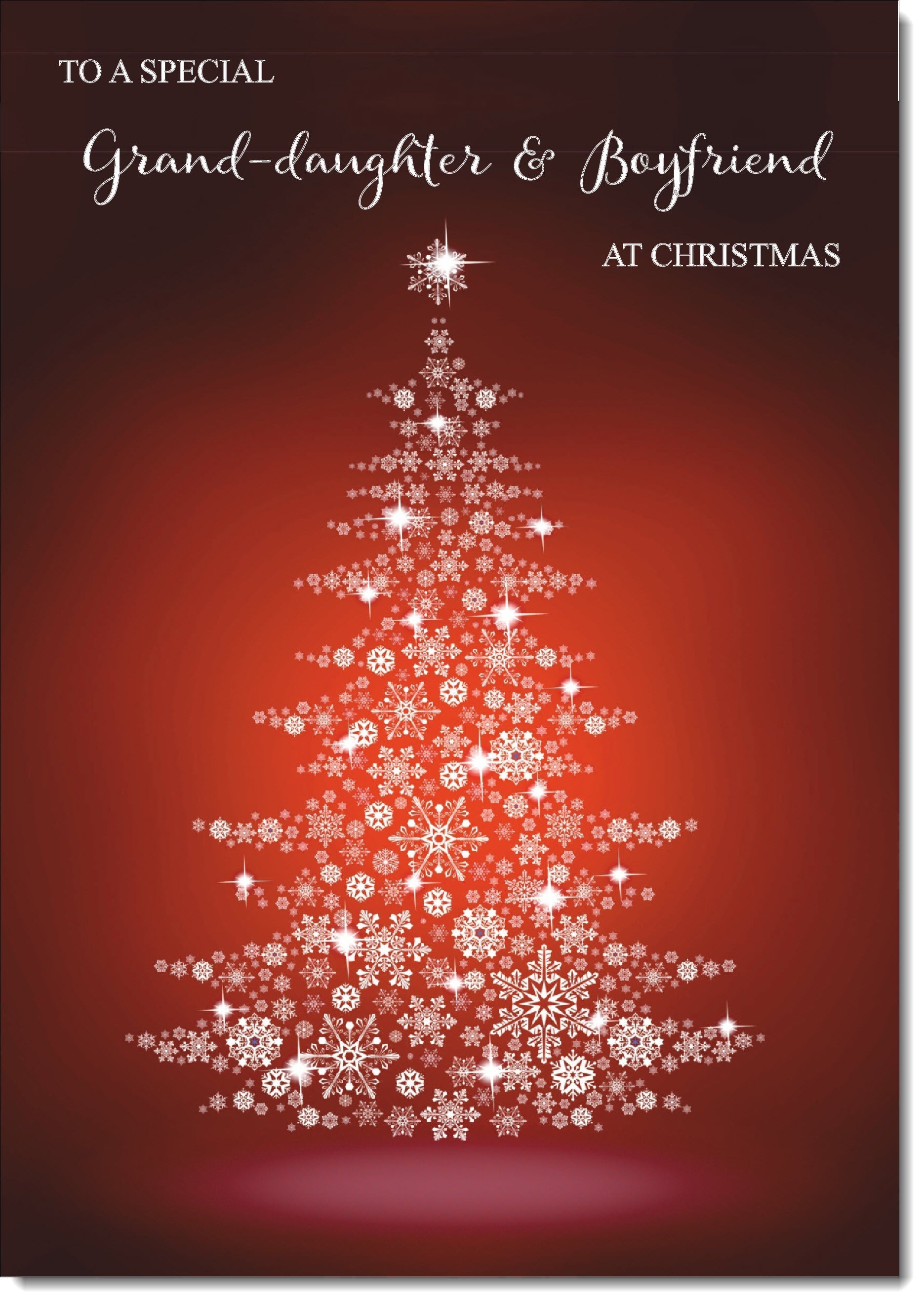 Granddaughter & Boyfriend Christmas Card Red Snowflake Christmas Tree