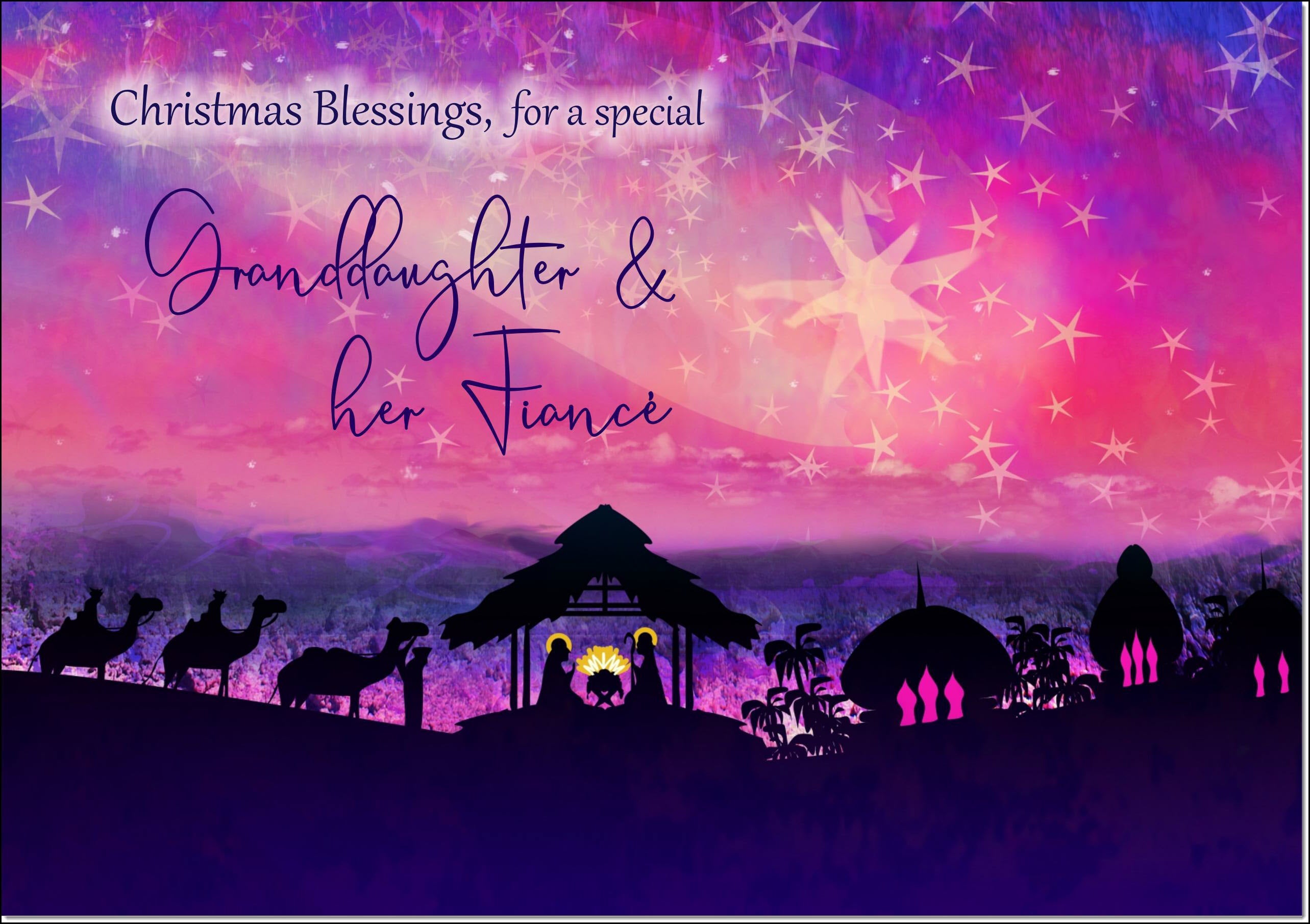 Granddaughter & Fiance Christmas Card Nativity Scene Evening Watercolour