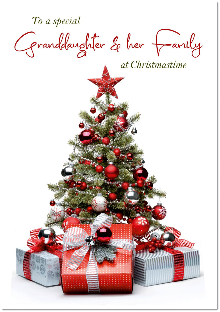 Granddaughter & Family Christmas Card Red Christmas Tree