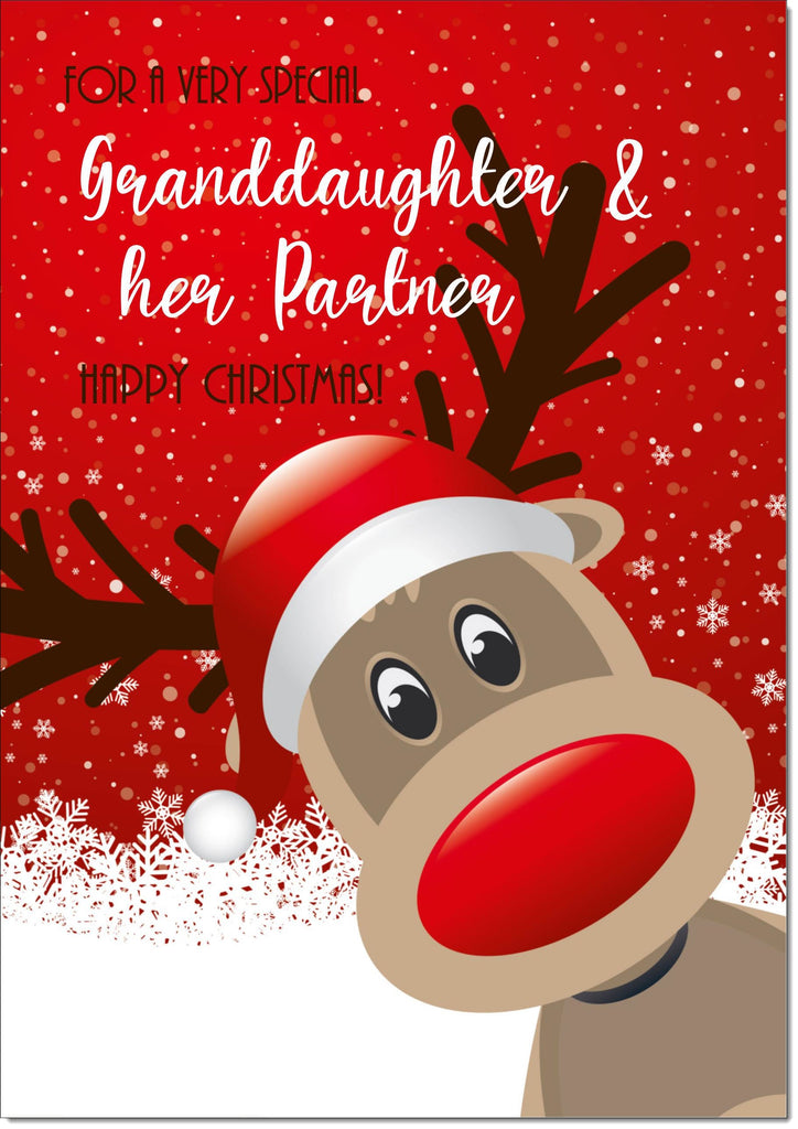 Granddaughter & Partner Christmas Card Rudolph in Snow