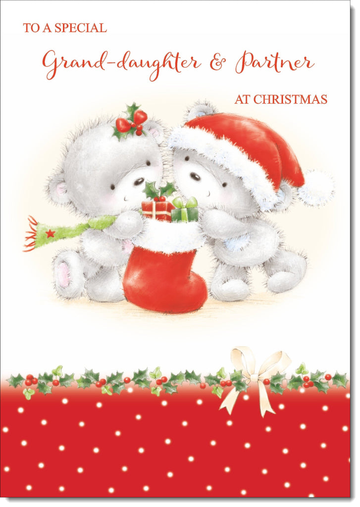 Granddaughter & Partner Christmas Card Cute Bears with Stocking