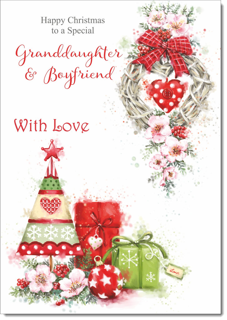 Granddaughter & Partner Christmas Card Christmas Tree and Parcels