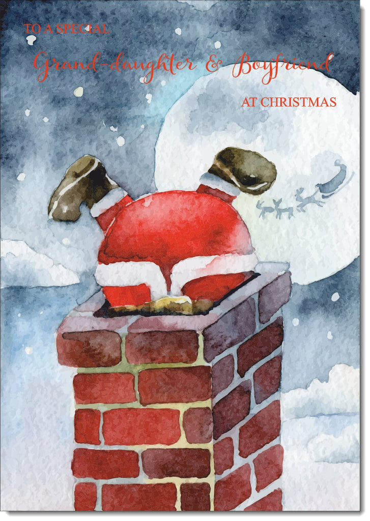 Granddaughter & Boyfriend Christmas Card Santa Stuck in the Chimney