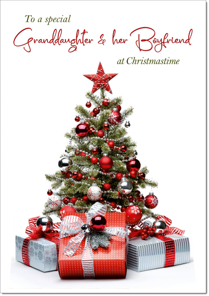 Granddaughter & Boyfriend Christmas Card Red Christmas Tree