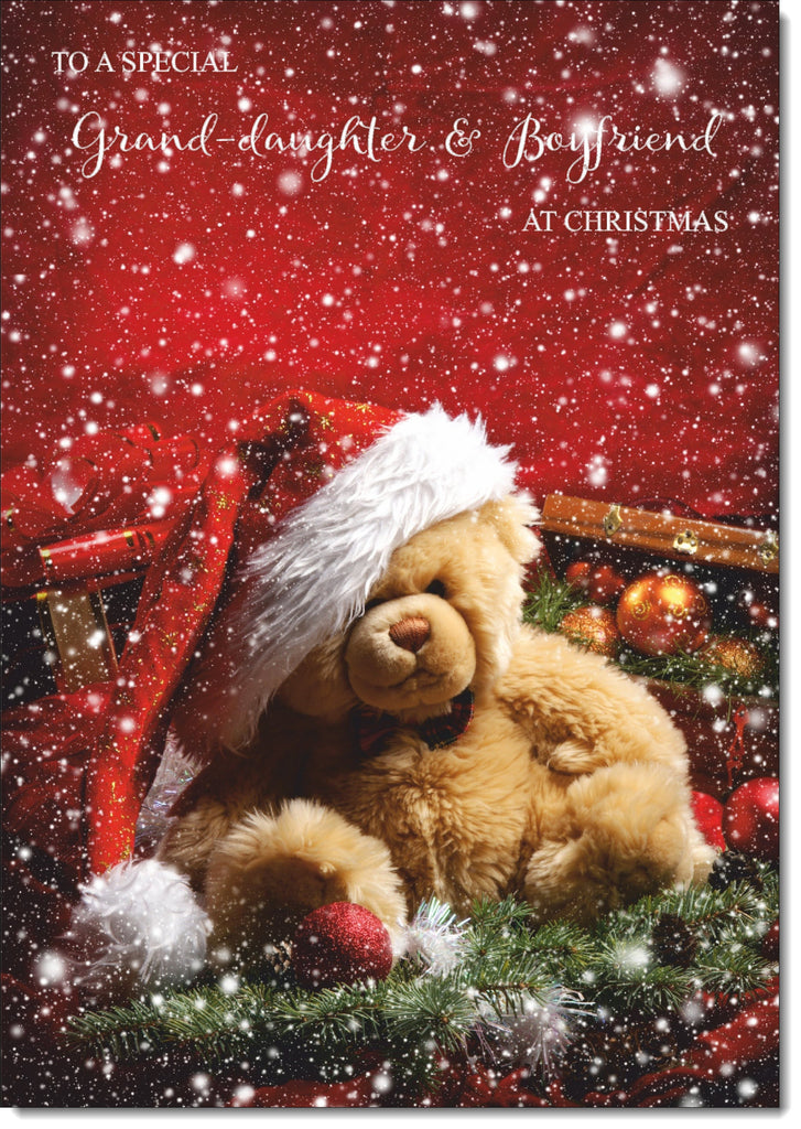 Granddaughter & Boyfriend Christmas Card Teddy Bear in Santa Hat