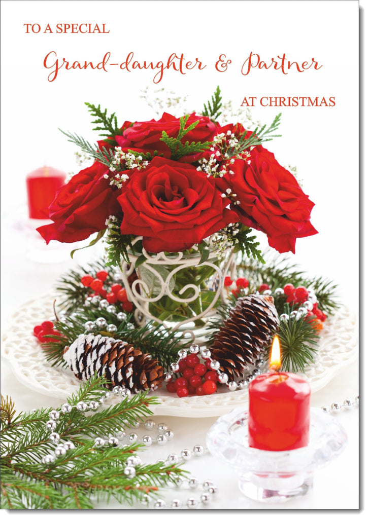 Granddaughter & Partner Christmas Card Red Christmas Roses