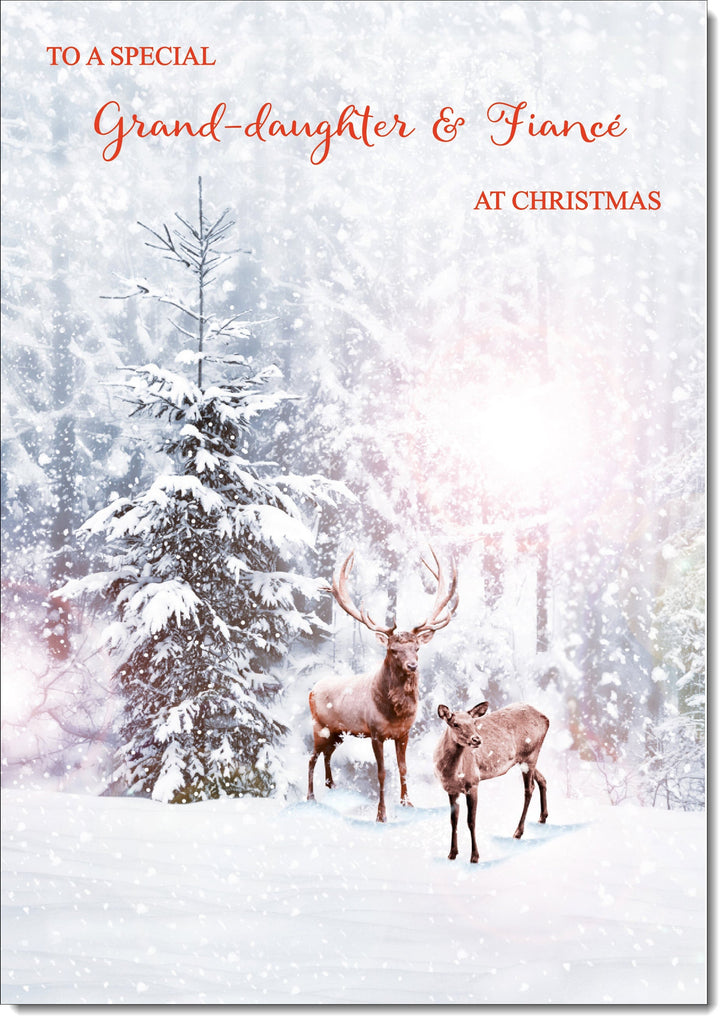 Granddaughter & Fiance Christmas Card Stag and Doe in Snowy Forest
