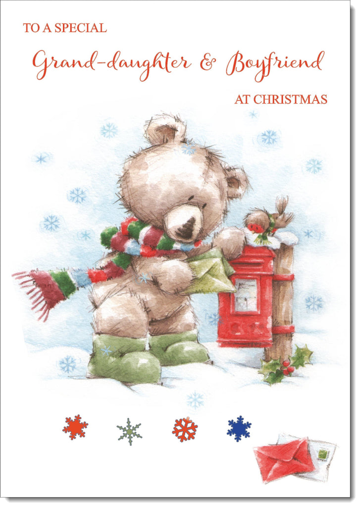 Granddaughter & Boyfriend Christmas Card Cute Bear at Post Box
