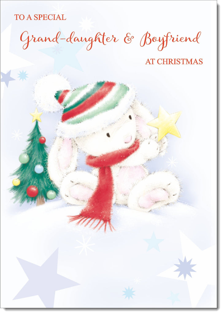 Granddaughter & Boyfriend Christmas Card Cute Rabbit with Star