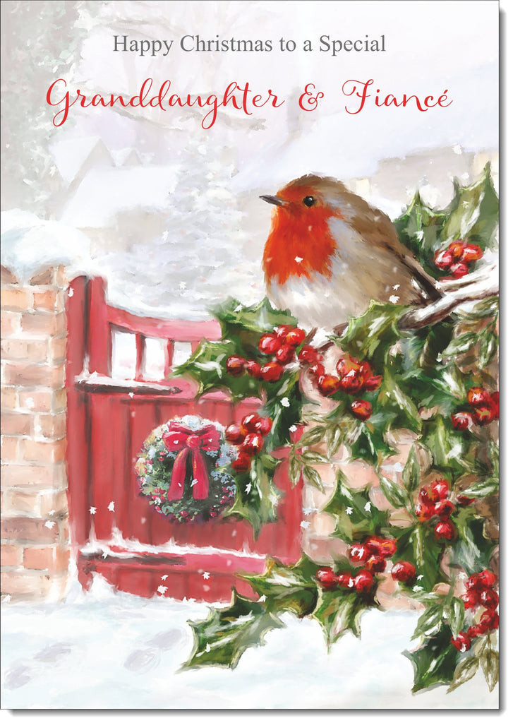 Granddaughter & Fiance Christmas Card Robin on Holly Tree