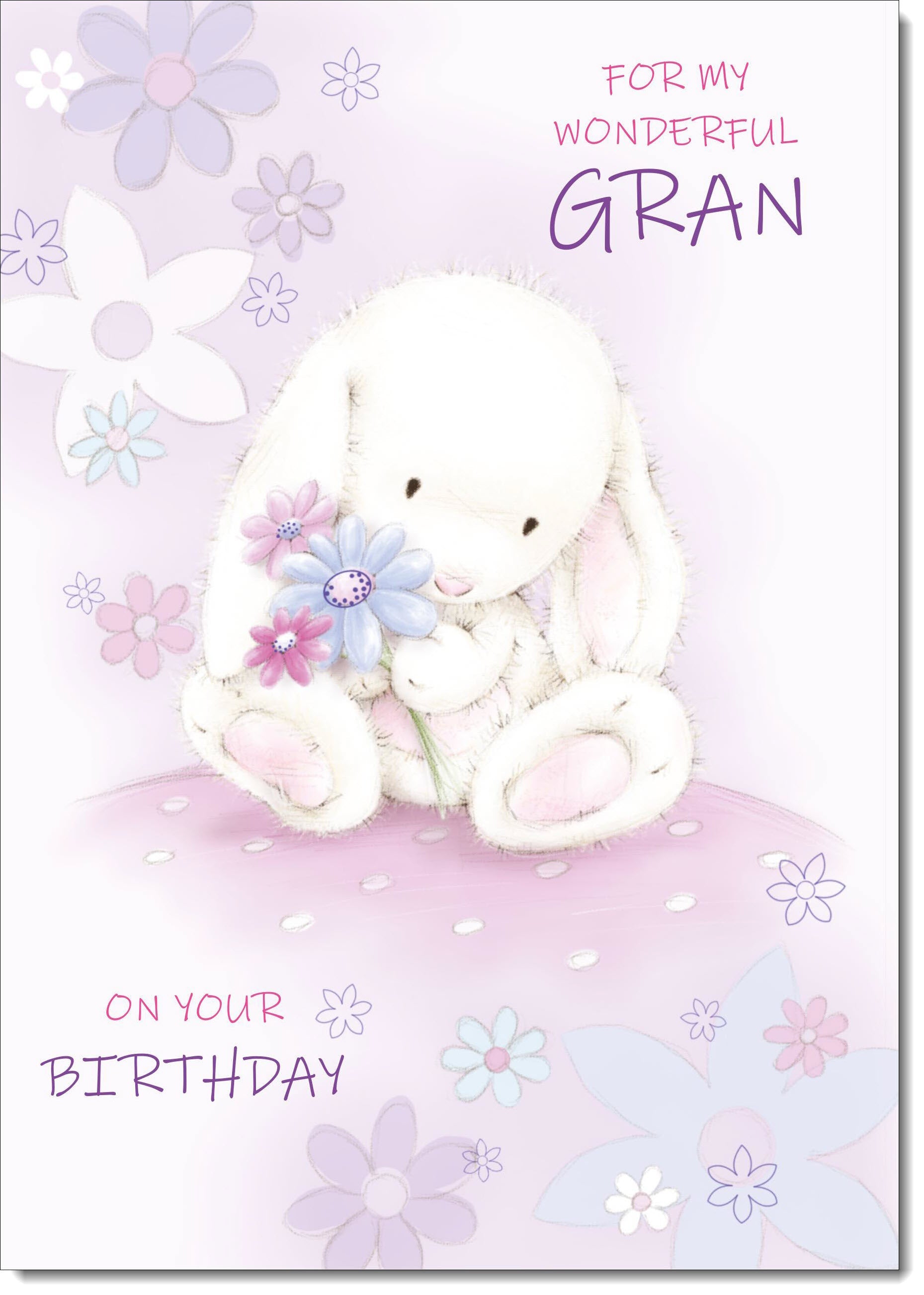 Gran Birthday Card Cute Rabbit with Flowers