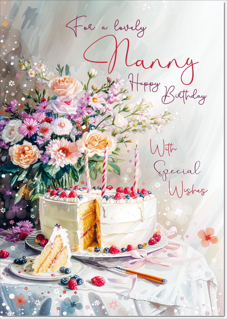 Nanny Birthday Card Birthday Cake and Flowers