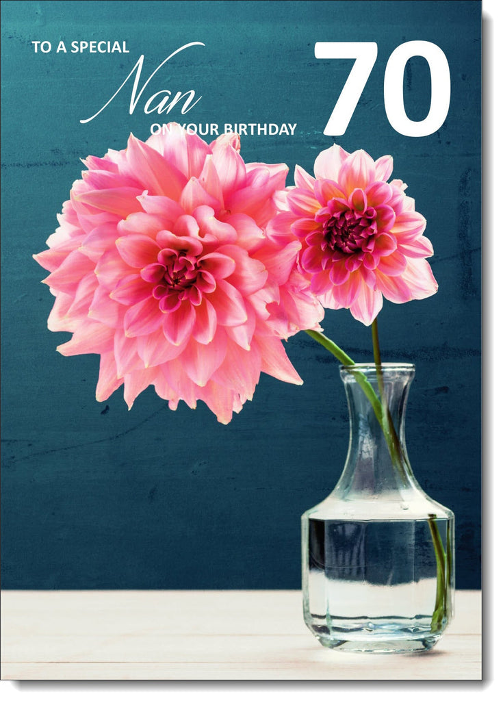 Nan 70th Birthday Card Age 70 Large Pink Flowers