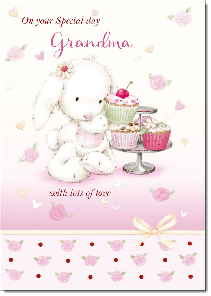 Grandma Birthday Card Cute Teddy's Flowers and Butterflies