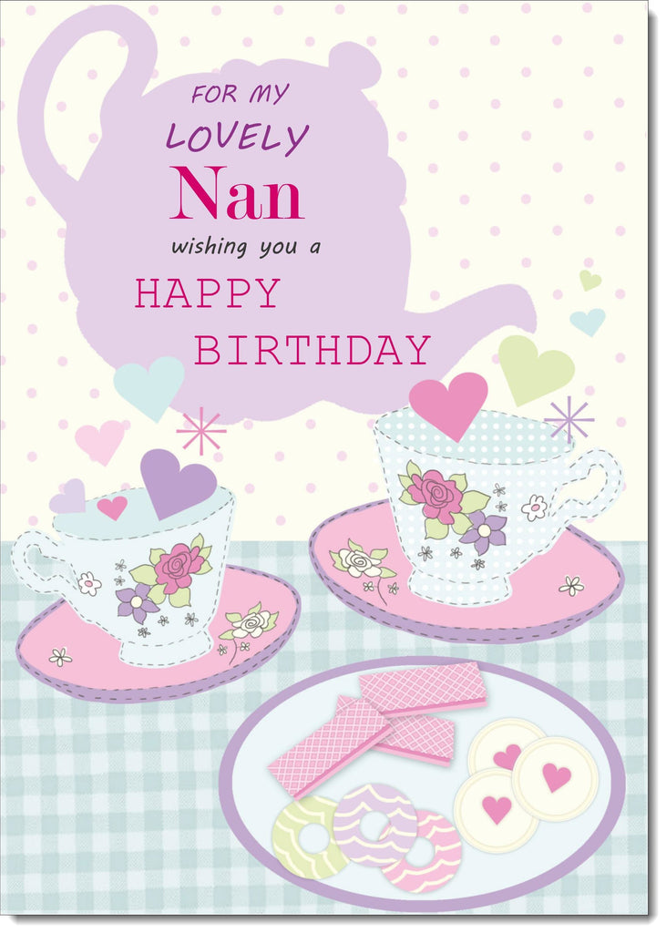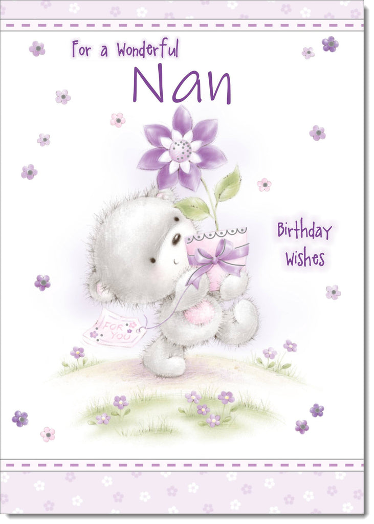 Nan Birthday Card Cute Teddy's Flowers and Butterflies