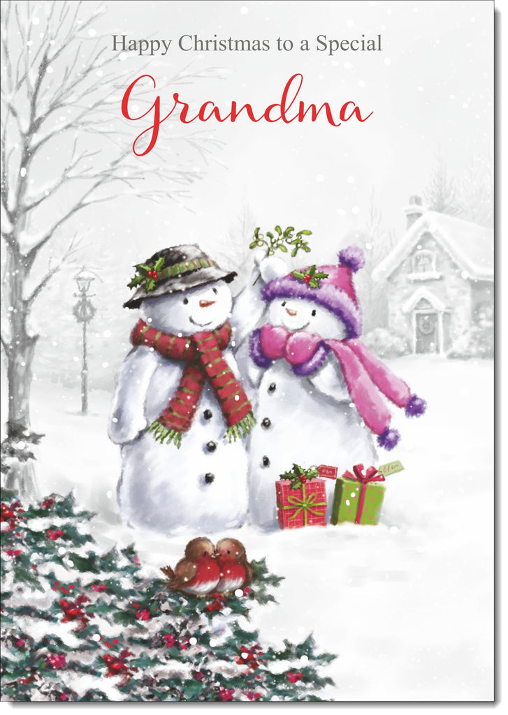 Grandma Christmas Card Cute Bear in Christmas Parcel