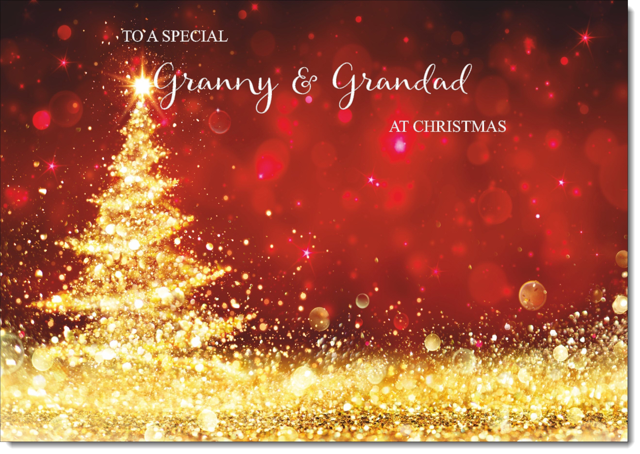 Granny & Grandad Christmas Card Gold Abstract ChristmasTree