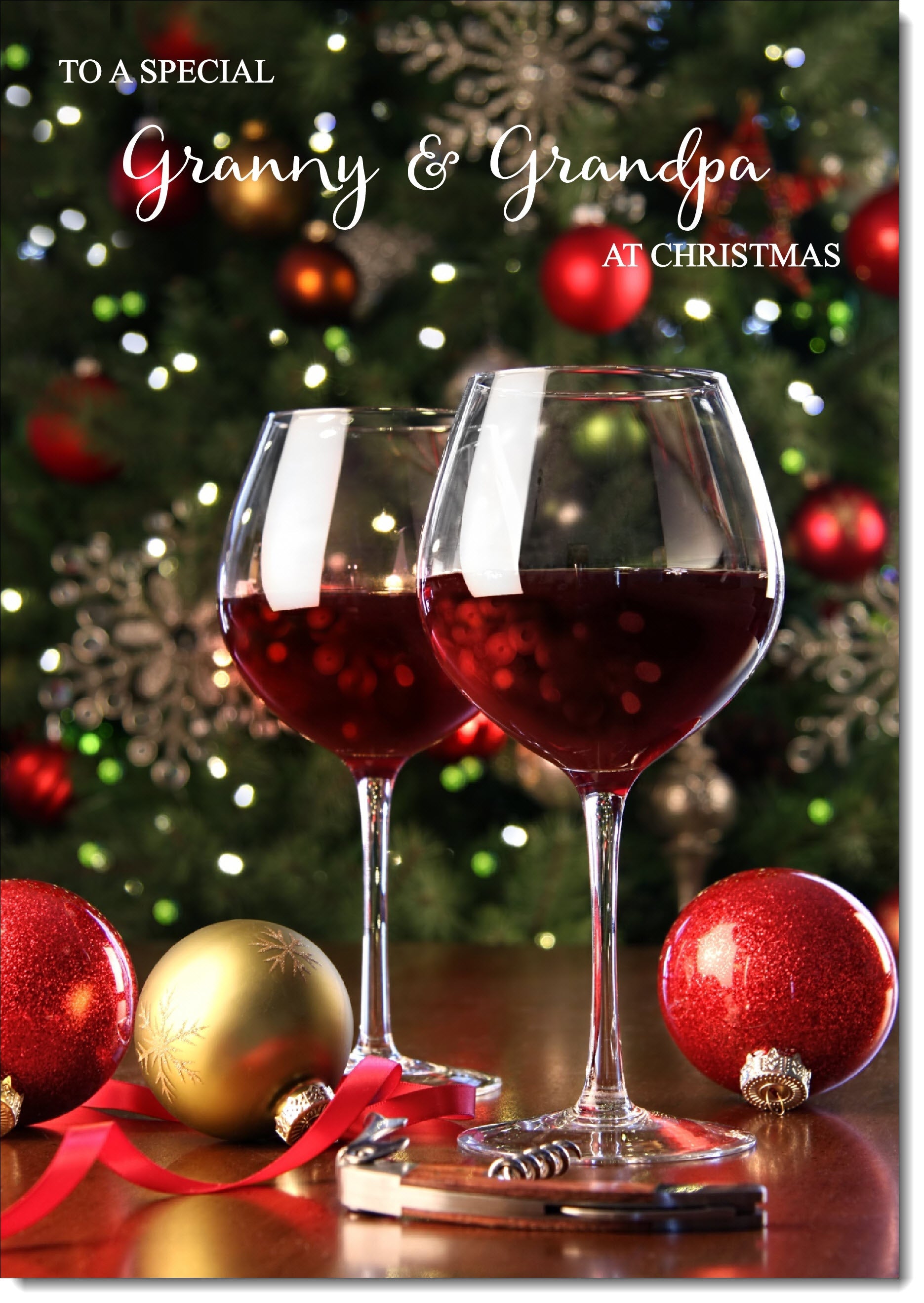 Granny & Grandpa Christmas Card Red Wine Glasses