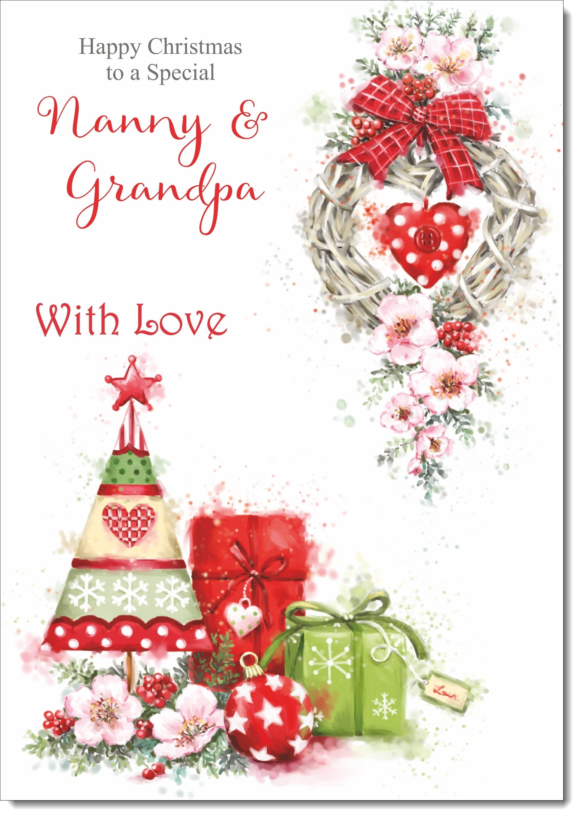 Nanny & Grandpa Christmas Card Hanging Heart Decoration