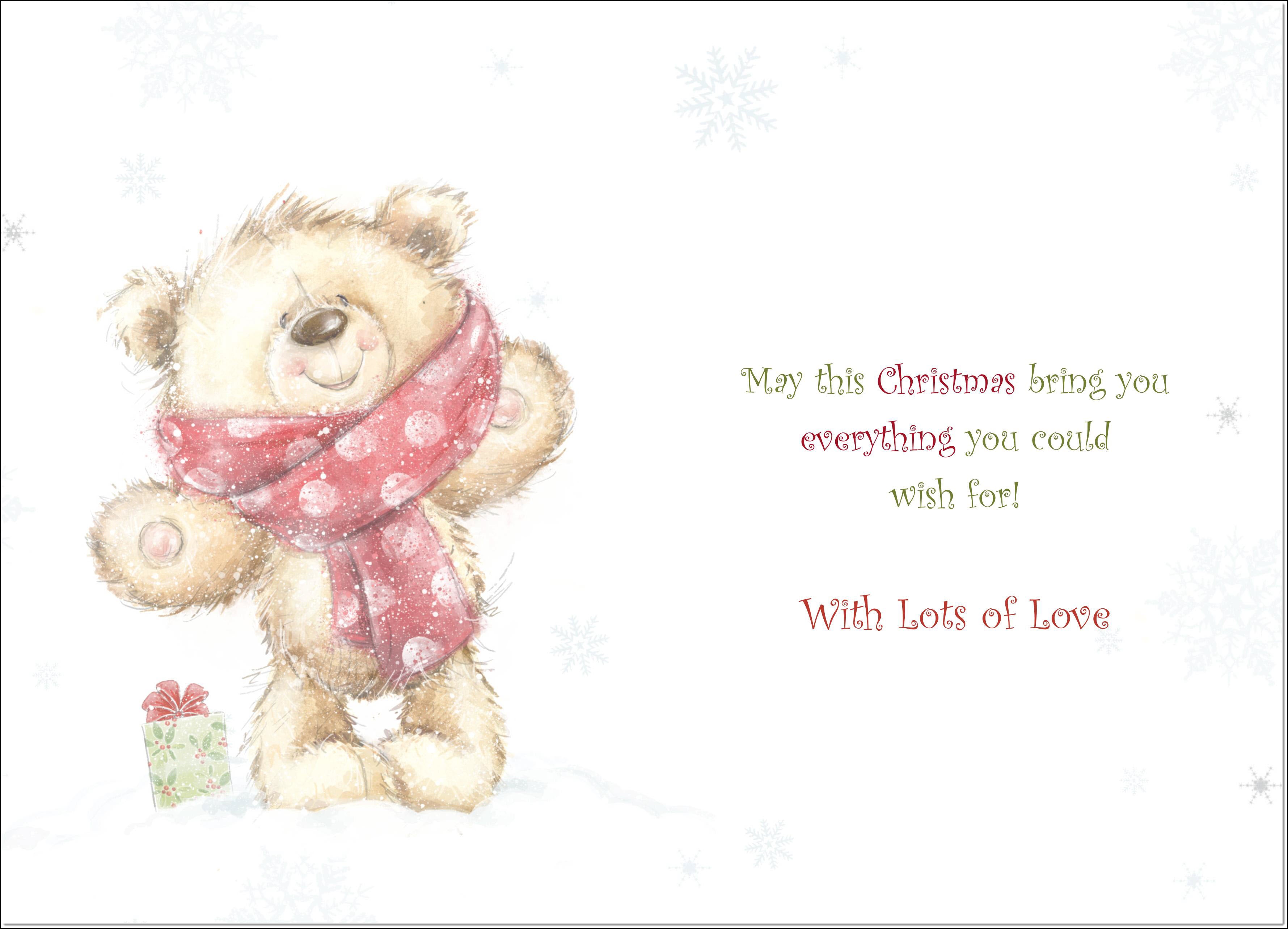 Nanna & Grandad Christmas Card Teddy Bear With Red Scarf