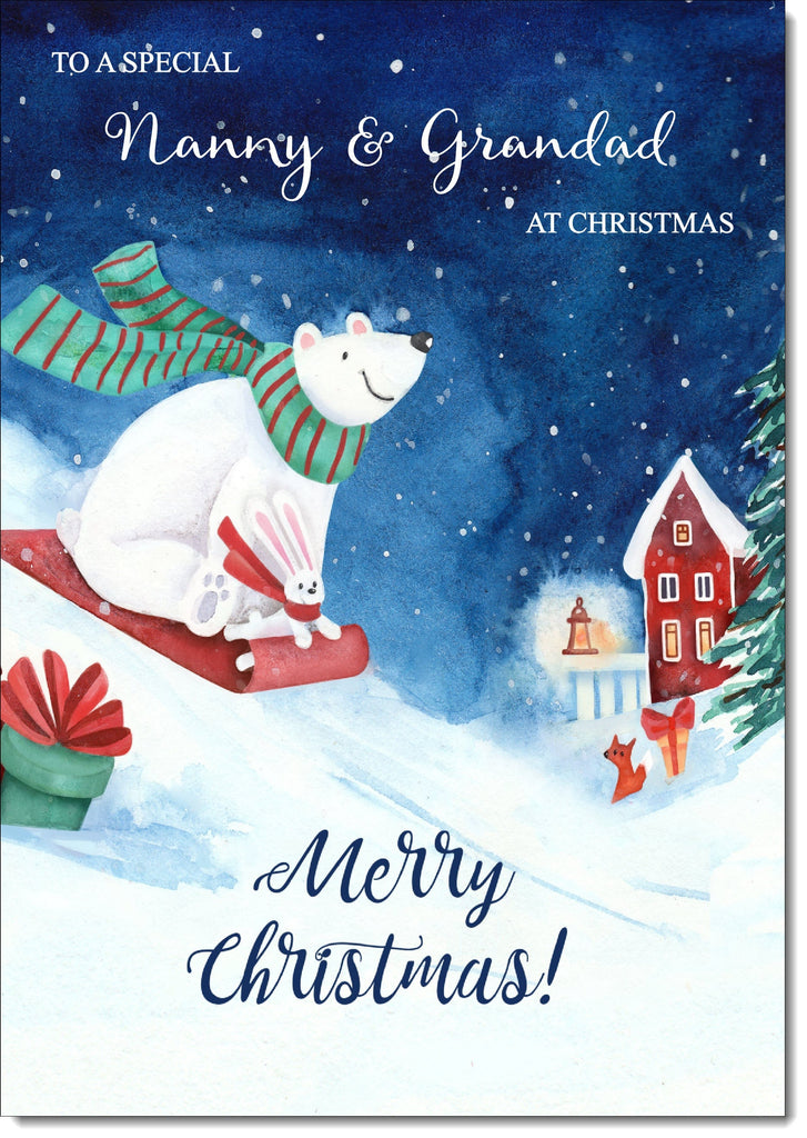 Nanny & Grandad Christmas Card Polar Bear on Sled