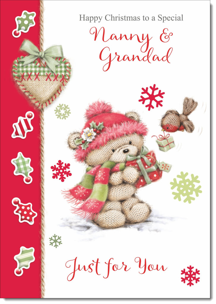 Nanny & Grandad Christmas Card Cute Bear in Christmas Parcel