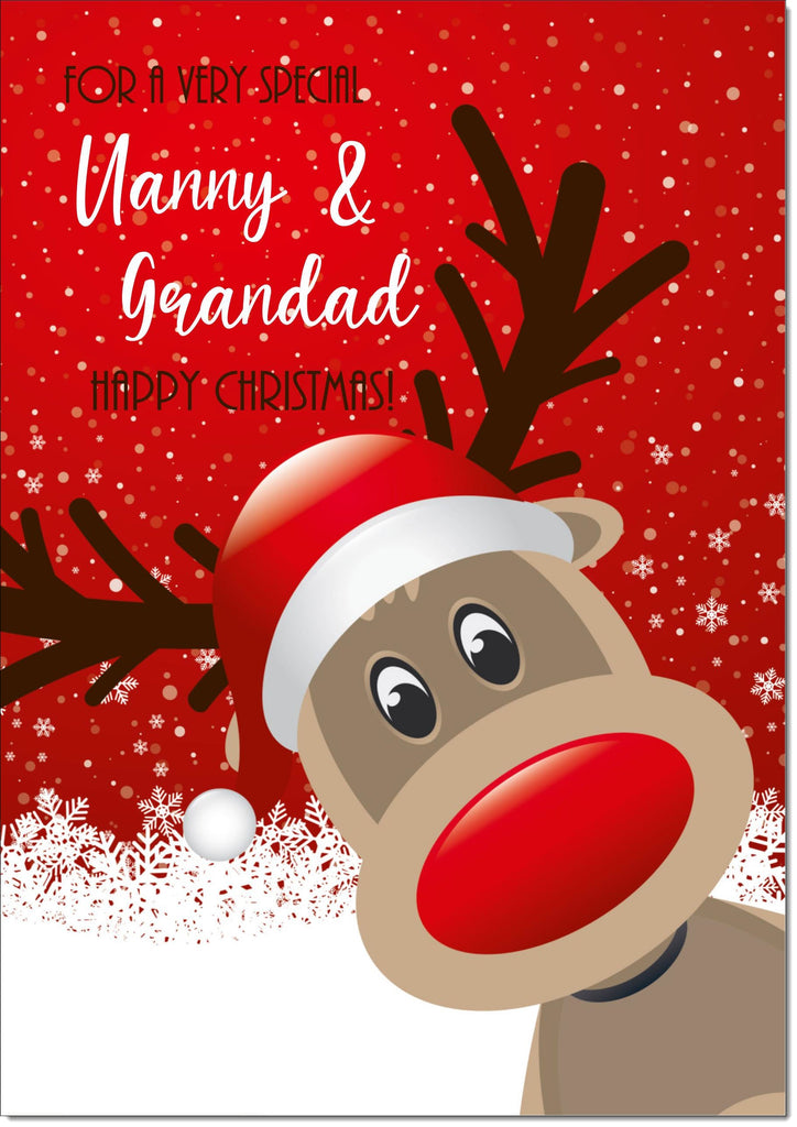 Nanny & Grandad Christmas Card Rudolph in Snow