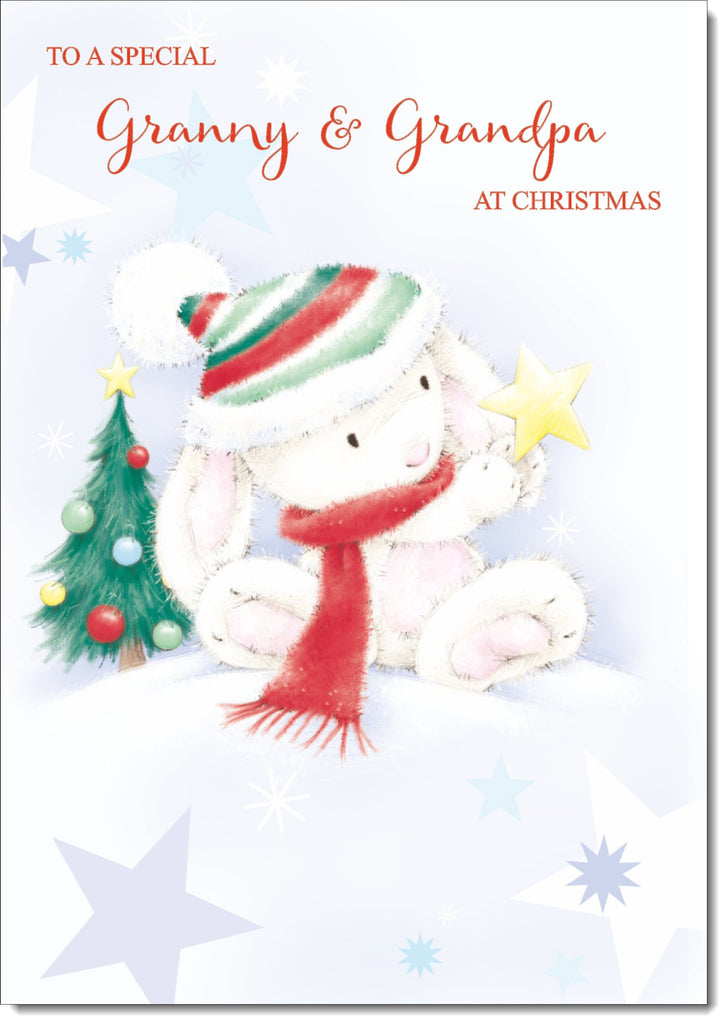 Granny & Grandad Christmas Card Cute Rabbit with Star