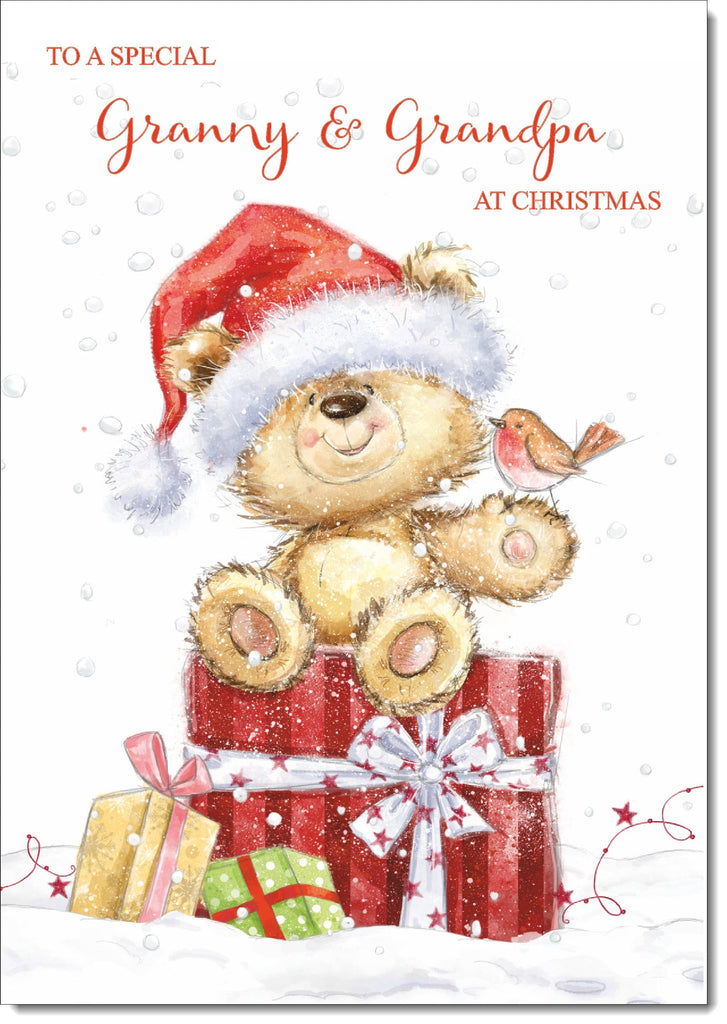 Granny & Grandpa Christmas Card Cute Bear on Parcel