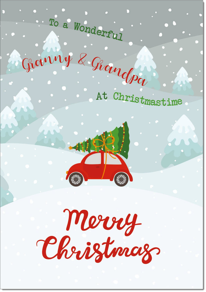 Granny & Grandad Christmas Card Christmas Tree on Car