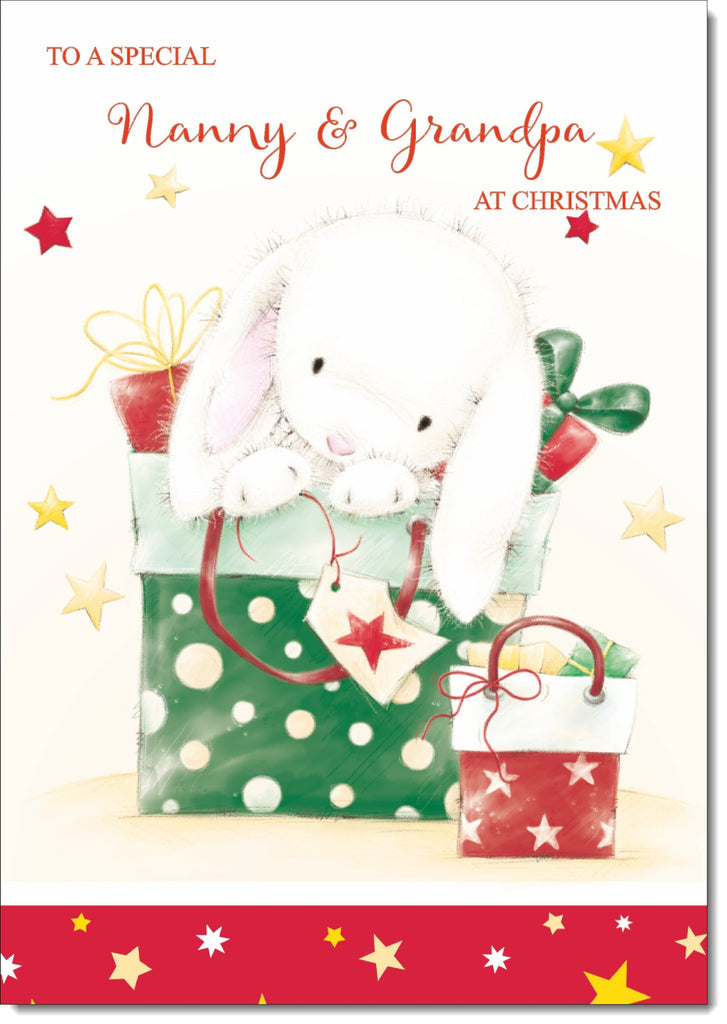 Nanny & Grandpa Christmas Card Cute Rabbit with Parcels
