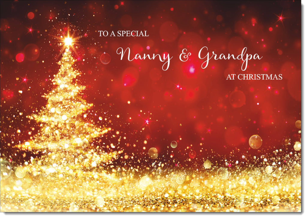 Nanna & Grandad Christmas Card Gold Abstract ChristmasTree