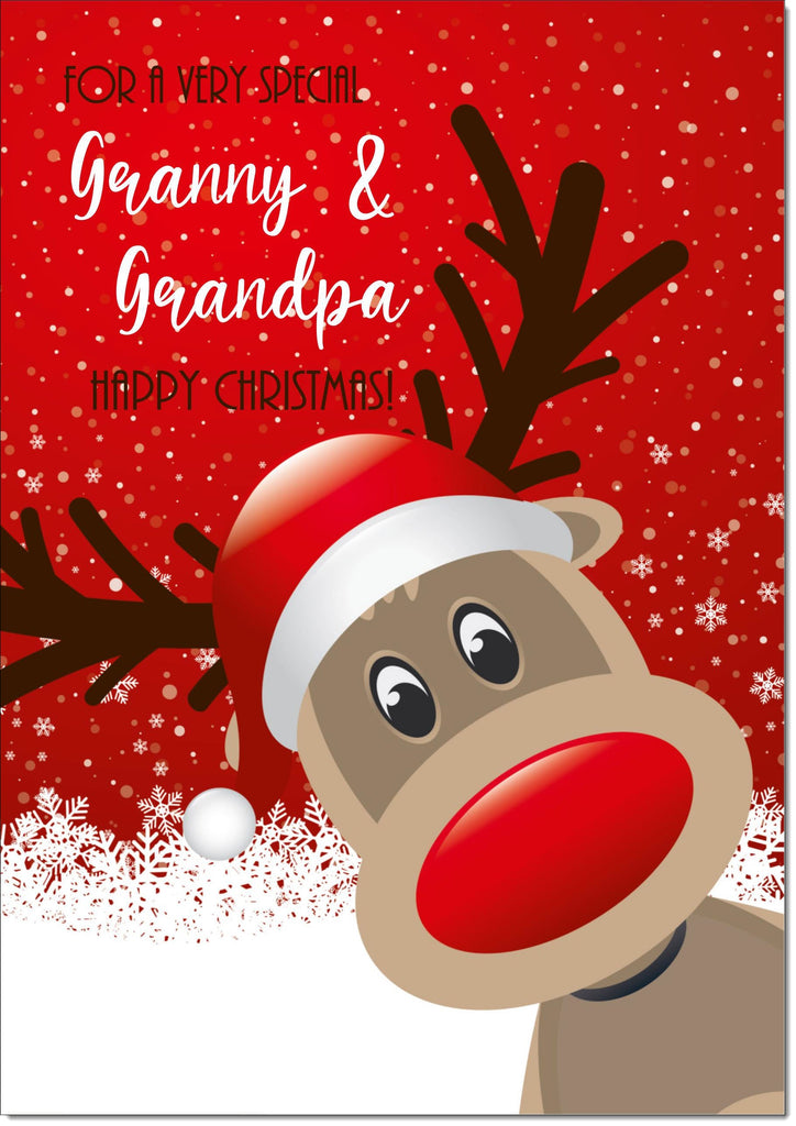 Gran & Grandad Christmas Card Rudolph on Red Background