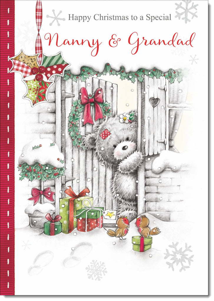 Nanny & Grandad Christmas Card Grey Bear in Snow
